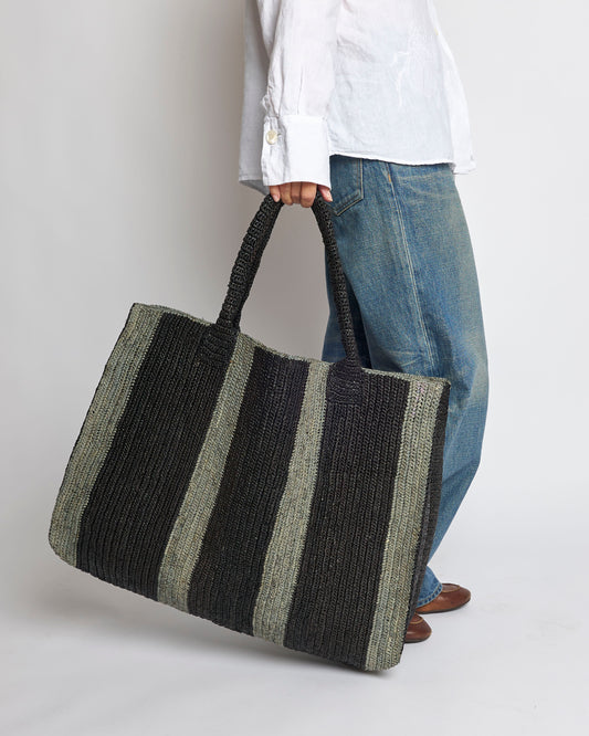 Raffia Bag Weekender black-grey