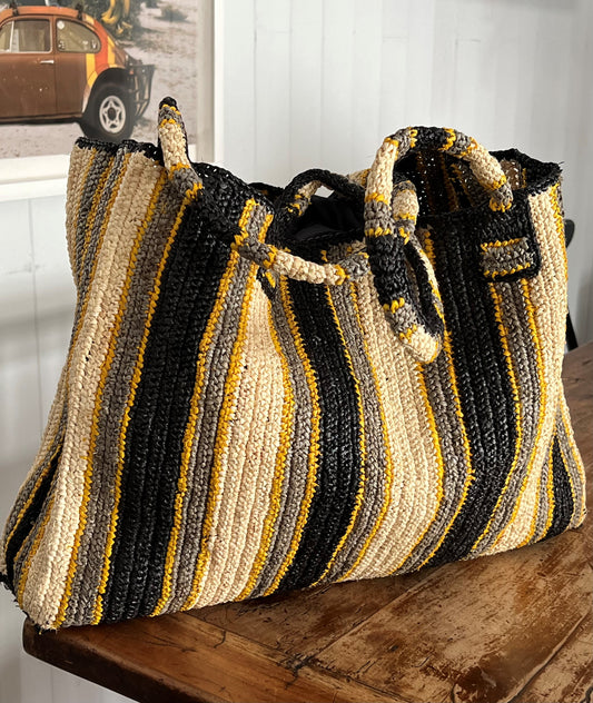 Raffia Bag Weekender black-beige