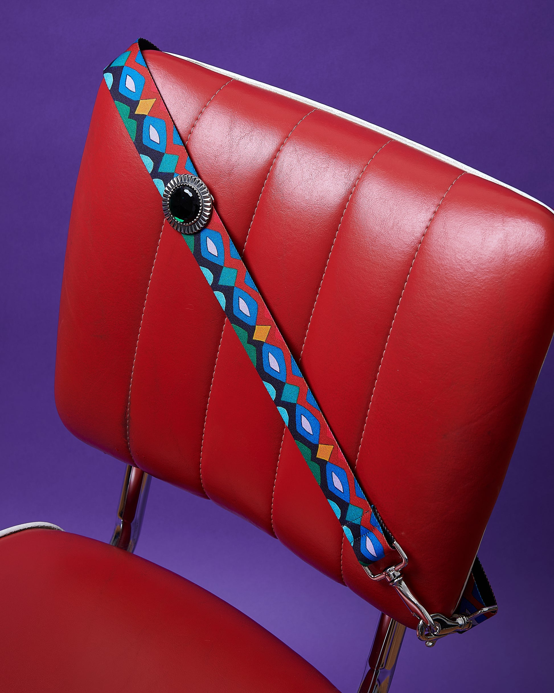 Verleihen Sie Ihrer Tasche mit Gabrieles Bag Strap mit einer farbenfrohen, lebendigen Sonne aus Kristallen höchster Qualität ein fabelhaftes Finish.