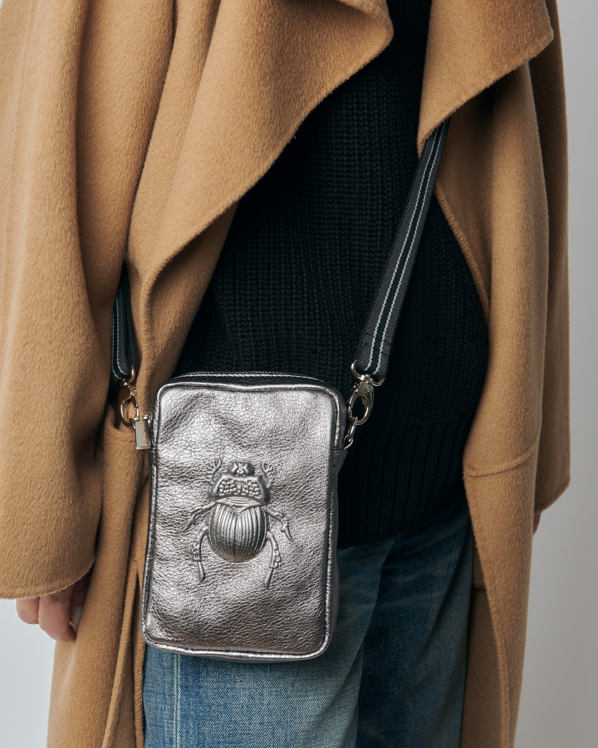 Gabrieles trendige Crossbody Bag in coolem Platin, einem dunklen Silberton, ist der perfekte Begleiter für tagsüber und abends.