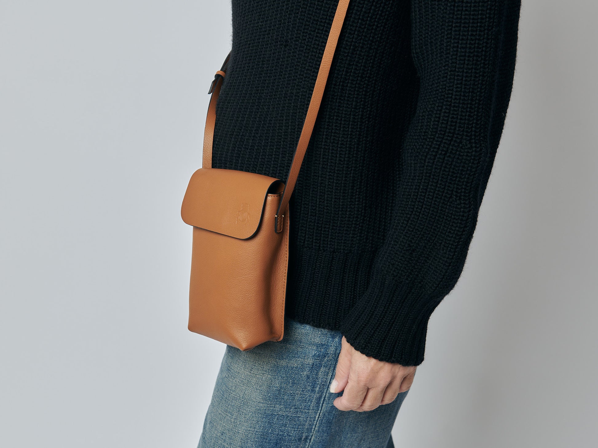 Gabrieles neue Phone Bag „THE CONNECTION“ in Cognac ist der perfekte Begleiter für jeden Tag.