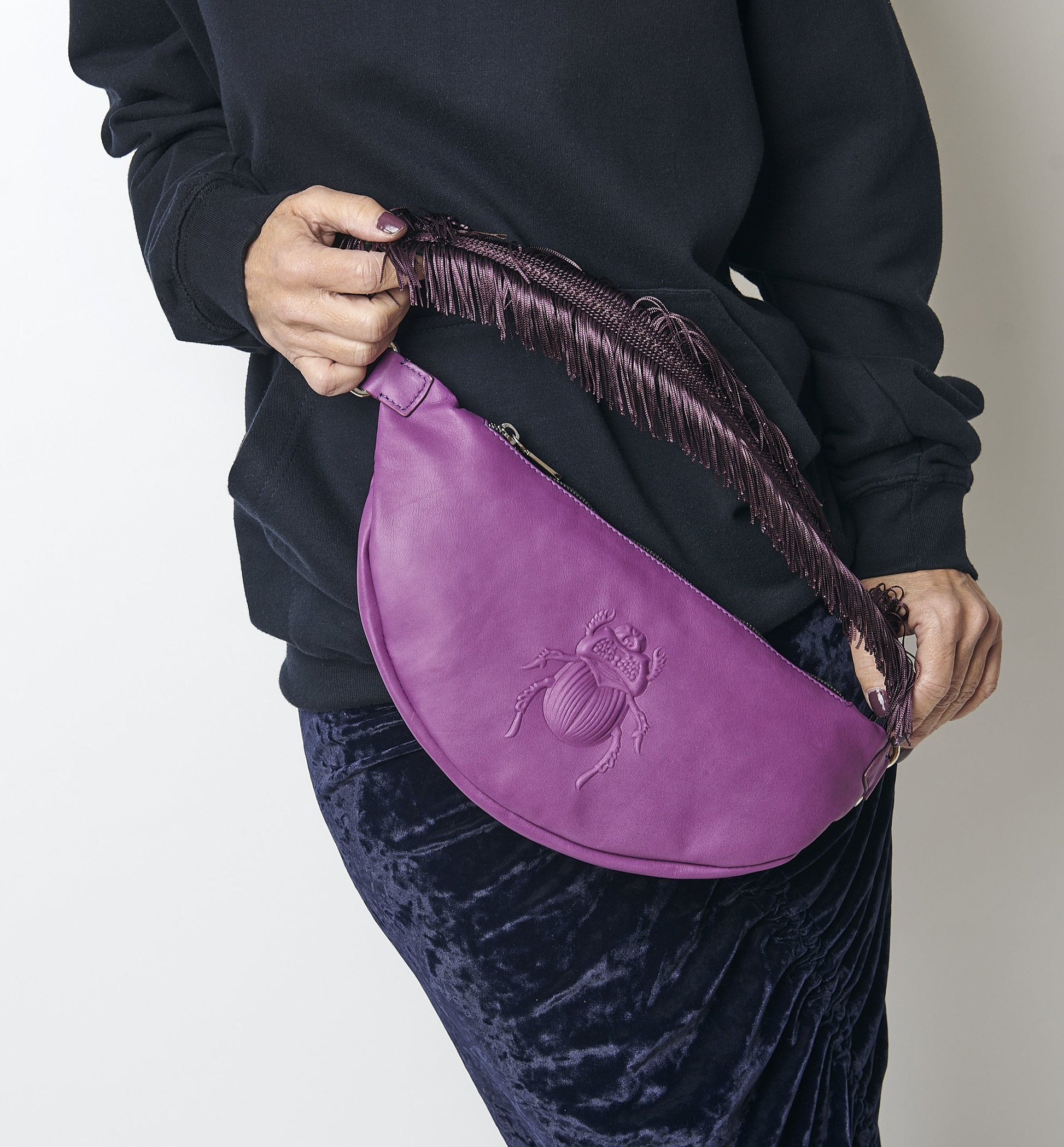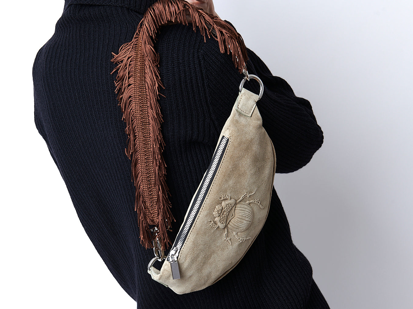 Gabriele’s fringed bag strap will take your everyday belt bag or any bag to the next level. Attach it via metal clips to the label's decorative belt bag or to any bag for an on-trend look.