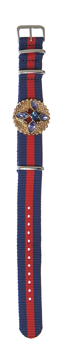 Individualize your bracelet collection with this striped watch strap, detailed with an eye-caching gold-tone charm, highest quality Crystals and a buckle fastening. Special on your wrist, on top of your sweaters and shirts, extraordinary on top of your coat.